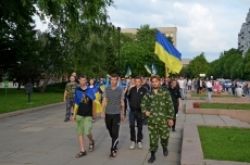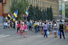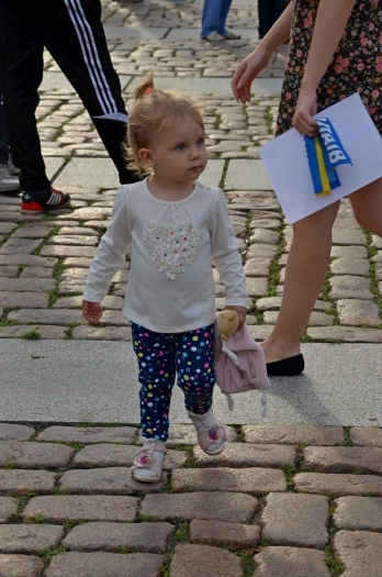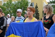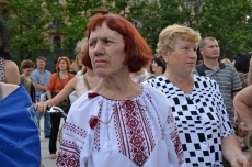 На площади у мемориального комплекса памяти Героев-ольшанцев активисты установили звукоусиливающую аппаратуру и включили украинскую музыку. Отметим, что большинство активистов пришли с государственными флагами Украины и в вышиванках.