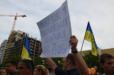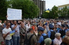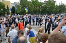 Противников проведения АТО пришло около 30 человек, тогда как сторонников единой Украины пришло около двух сотен, сообщает корреспондент НикВестей с места событий.