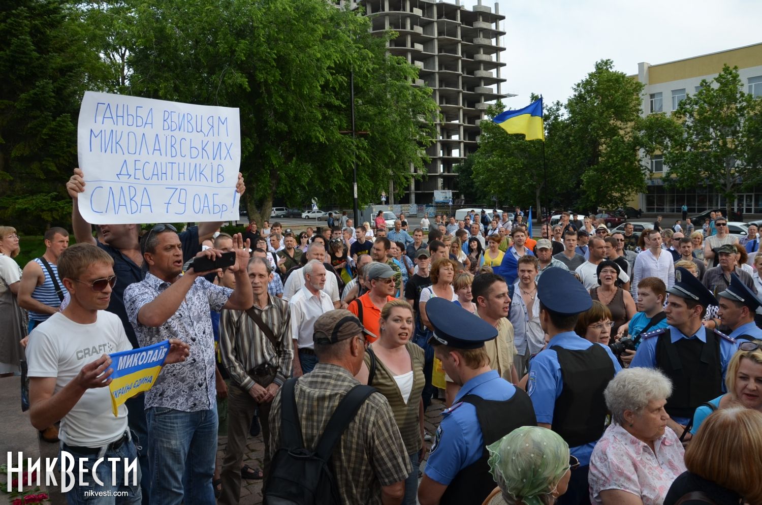 Сегодня, 4 июня, площадь возле памятника Ольшанцам вновь заняли патриотически настроенные жители города Николаева, которые в очередной раз не дали провести митинг сторонникам Путина.
