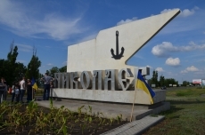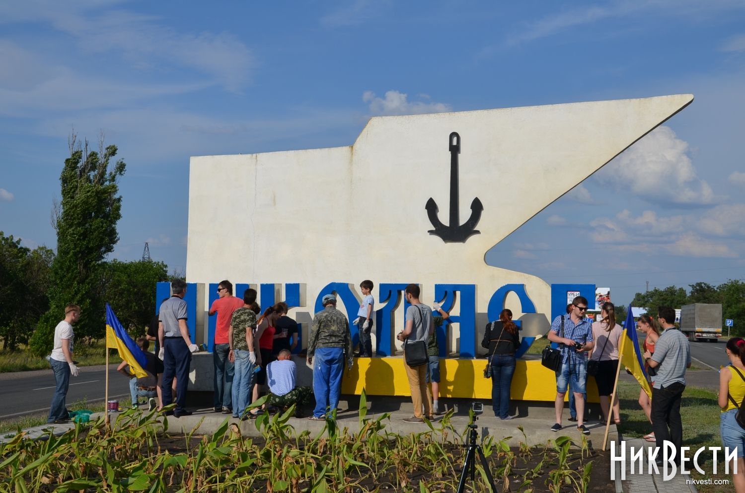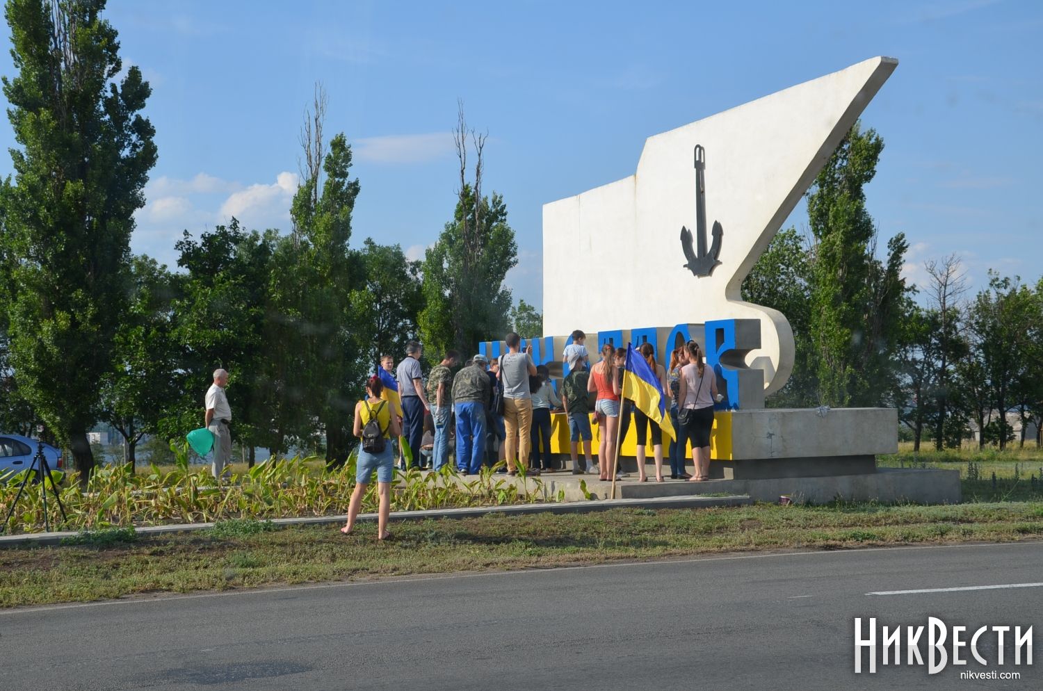 Активисты раскрасили знак на въезде в Николаев в цвета государственного флага Украины