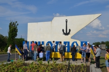 Заключалась она в том, что въездной знак в город, расположенный на Одесской трассе, был выкрашен в сине-желтый цвет, передает корреспондент НикВестей.