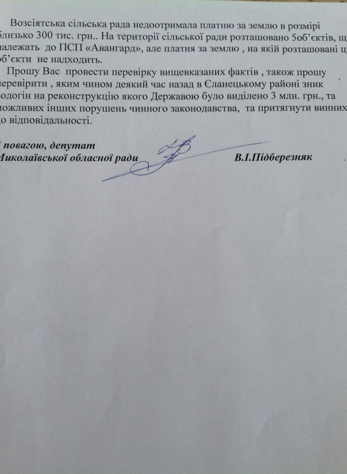 Сегодня глава фракции ВО «Батьківщина» в Николаевском областном совете Вадим Пидберезняк направил обращение к прокурору области с тем, чтобы проверить предприятие, к которому имеет отношение экс-глава облсовета Татьяна Демченко.