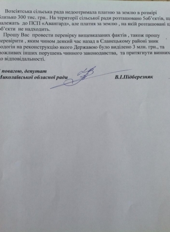 По его словам, руководит ЧСП «Авангард» муж главы областного совета прошлого созыва, причем на словах семья Демченко печется о бедных жителях села, а на деле грабят, заявляет Вадим Пидберезняк.