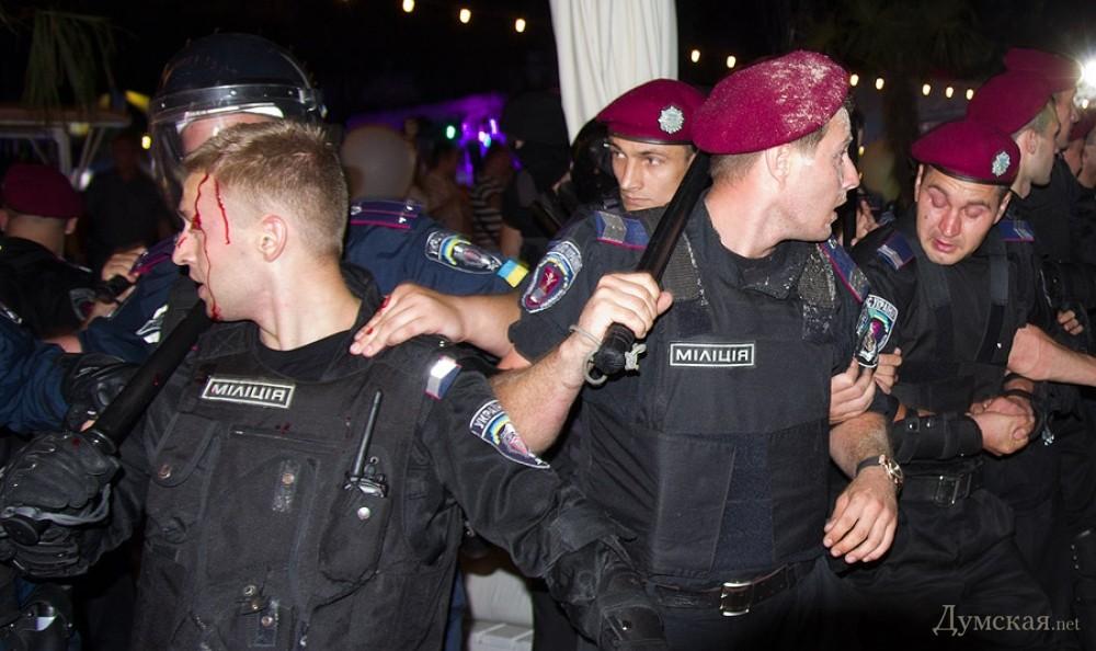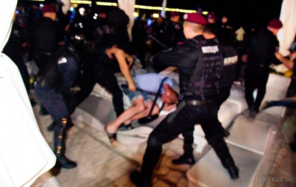 На пляже ночного клуба «Ибица» в Аркадии произошло столкновение между сотрудниками милиции и активистами «Евромайдана», которые пытались сорвать концерт певицы Ани Лорак.