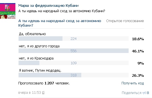— Наша цель - создание Кубанской республики в составе РФ или уравнивание в правах наших регионов с республиками, - отмечают организаторы мероприятия.
