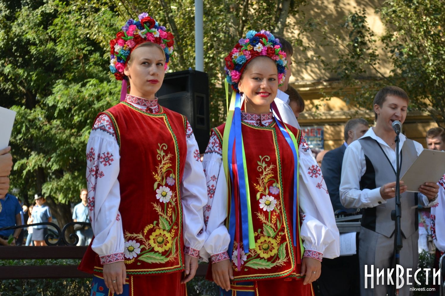 Большинство участников памятного собрания пришли в вышиванках, практически у всех в руках были цветы. На протяжении мероприятия ансамбль исполнял народные песни.