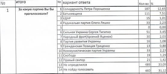 В то же время, на вопрос, за какую партию готовы проголосовать избиратели 131 округа, 12.65% респондентов выбрали партию «Блок Петра Порошенко», при том, что 33,09% респондентов не определились, за какую партию проголосовать.