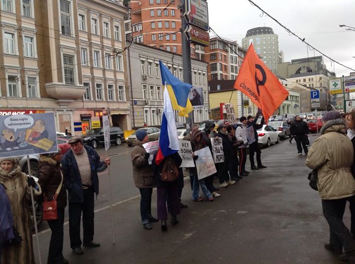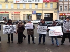 Пикетчики держали плакаты с надписями «Нет войне с Украиной», «Путин - болезнь, Майдан - лекарство», «Свободу Надежде Савченко» и другие.