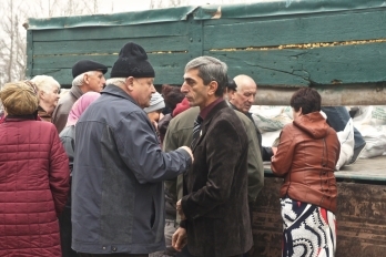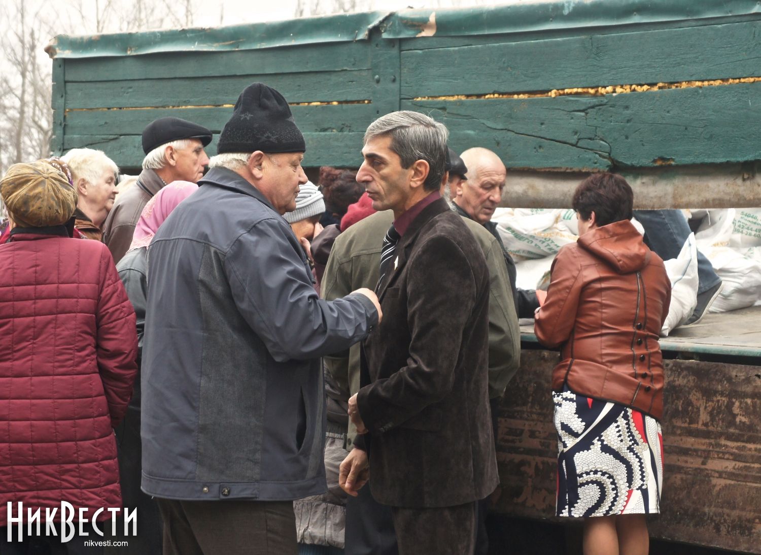 В мероприятии участвовал также председатель Жовтневой районной организации Партии регионов Арутюн Рушанян. Он возглавил партию в августе 2014 года после ухода Алены Раковой. Сам Рушанян продуктовый набор не взял, а просто общался с людьми.