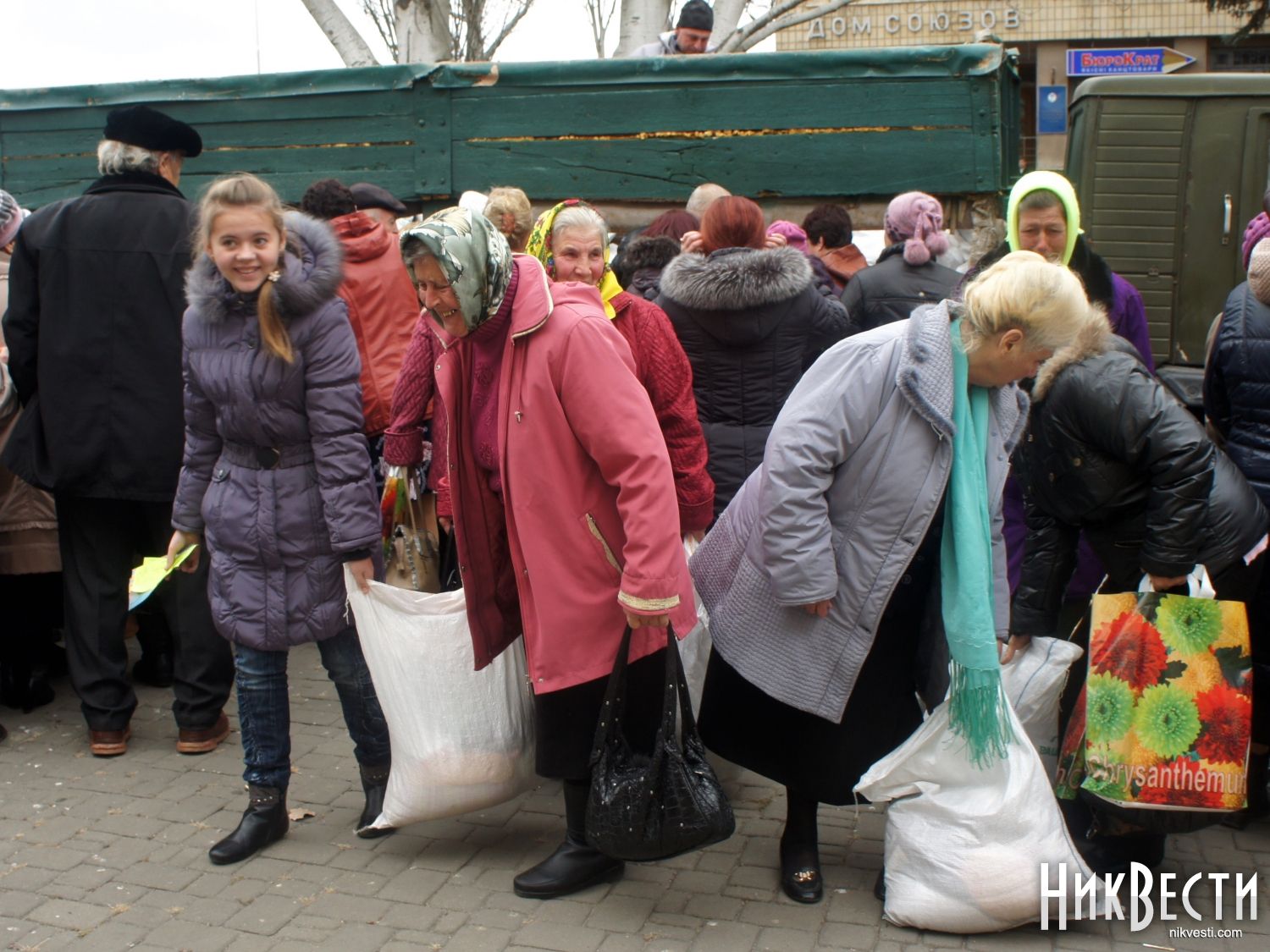 Раздача происходила сегодня в полдень около здания русского драматического театра, - сообщает корреспондент НикВестей.