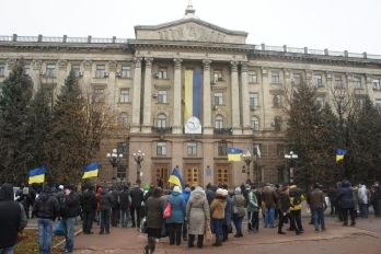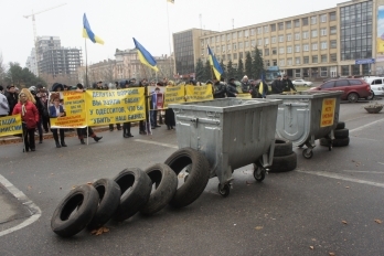 Ранее сообщалось, что сегодня под стены мэрии протестующие принесли 2 мусорных бака и 10 автомобильных покрышек.