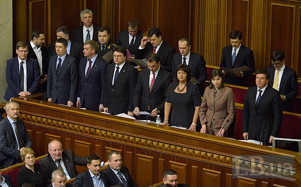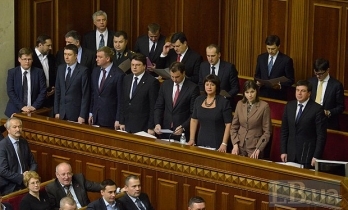 Верховная Рада утвердила новый Кабмин, проголосовав одним пакетом за назначение 17 человек. "За" проголосовали 288 депутатов.