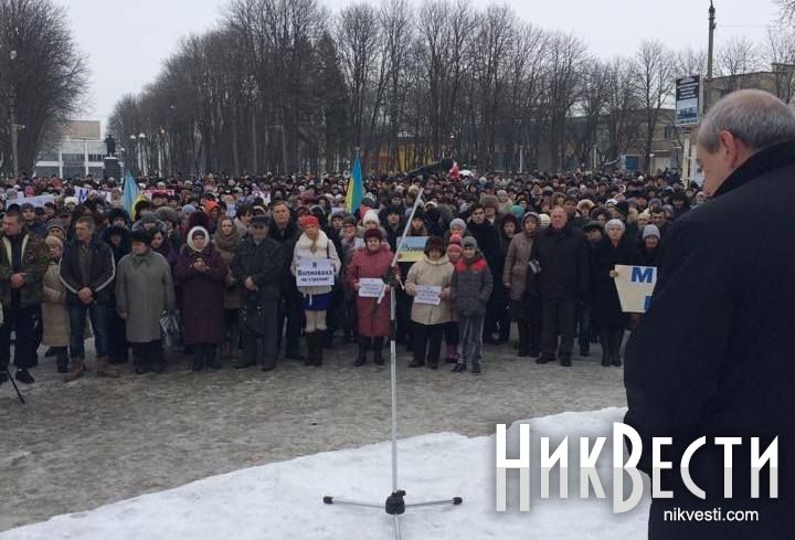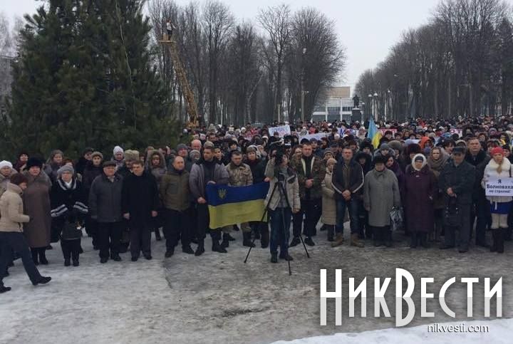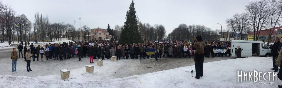 Сегодня, 18 января, в 12:00 жители Николаева пришли на главную площадь города, чтоб вспомнить об украинцах, которые погибли в Волновахе, и других погибших от рук террористов.
