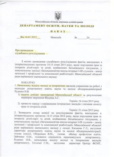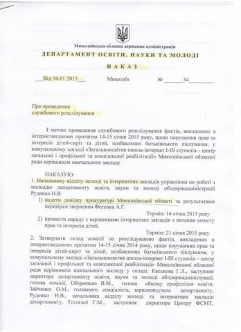 Ранее сообщалось, что директор николаевской школы-интерната №5 Николай Ляшенко замалчивает сообщение об изнасиловании одной из воспитанниц учебного заведения – с его слов, 15-летняя девушка написала заявление 17 января, однако по сегодняшний день он не уведомил о преступлении милицию, приняв решение провести «свое расследование».