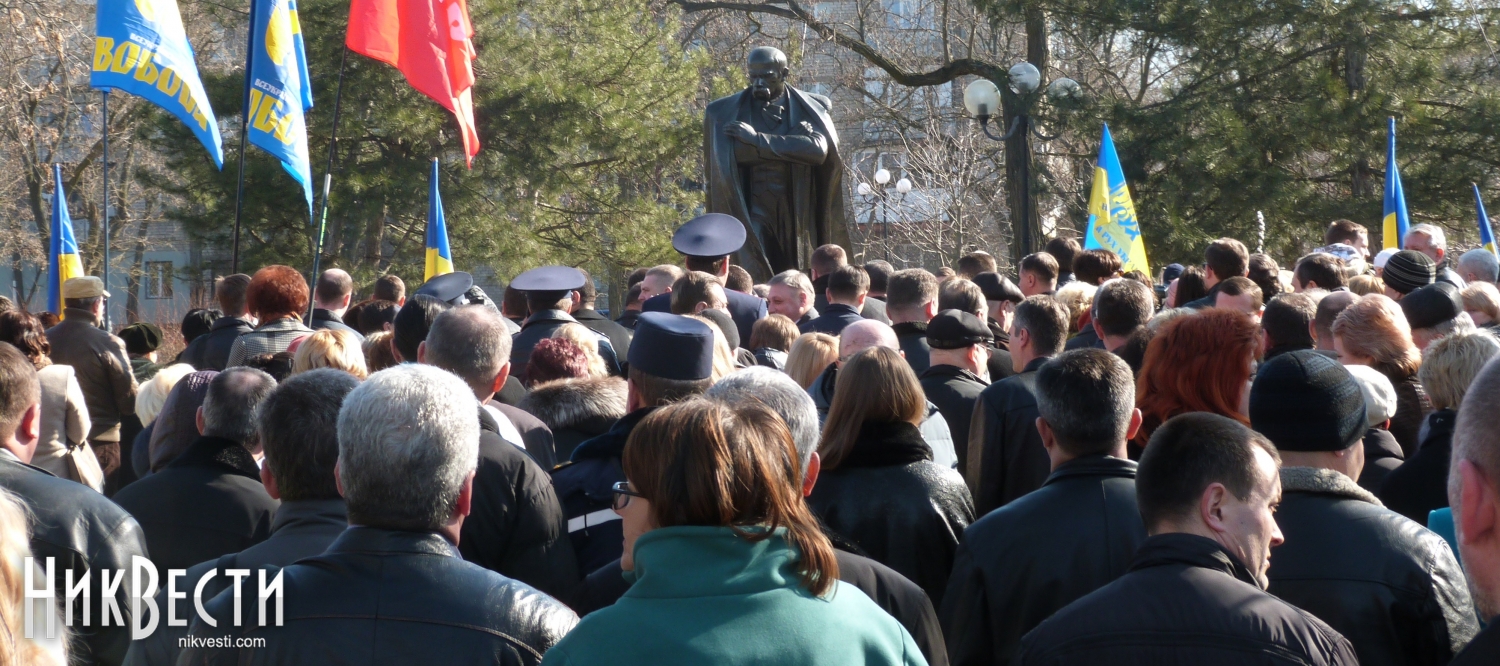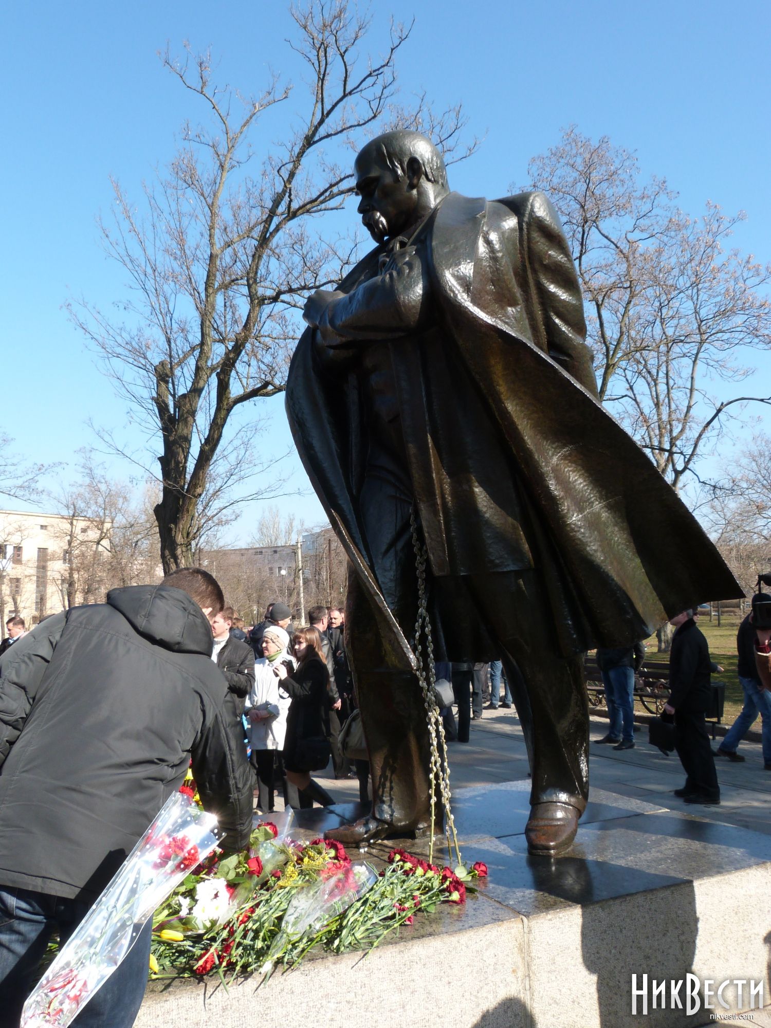 Сегодня, 9 марта, жители Николаева пришли к памятнику Тарасу Шевченко, чтобы отметить 201 годовщину со дня рождения великого украинского поэта и художника. Митинг был немногочисленным.