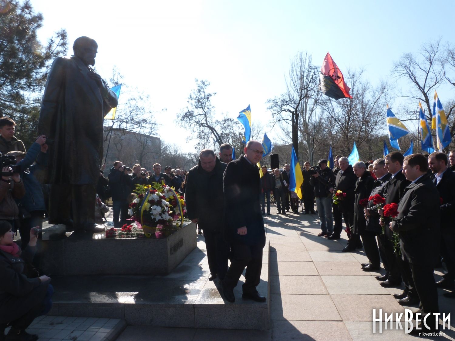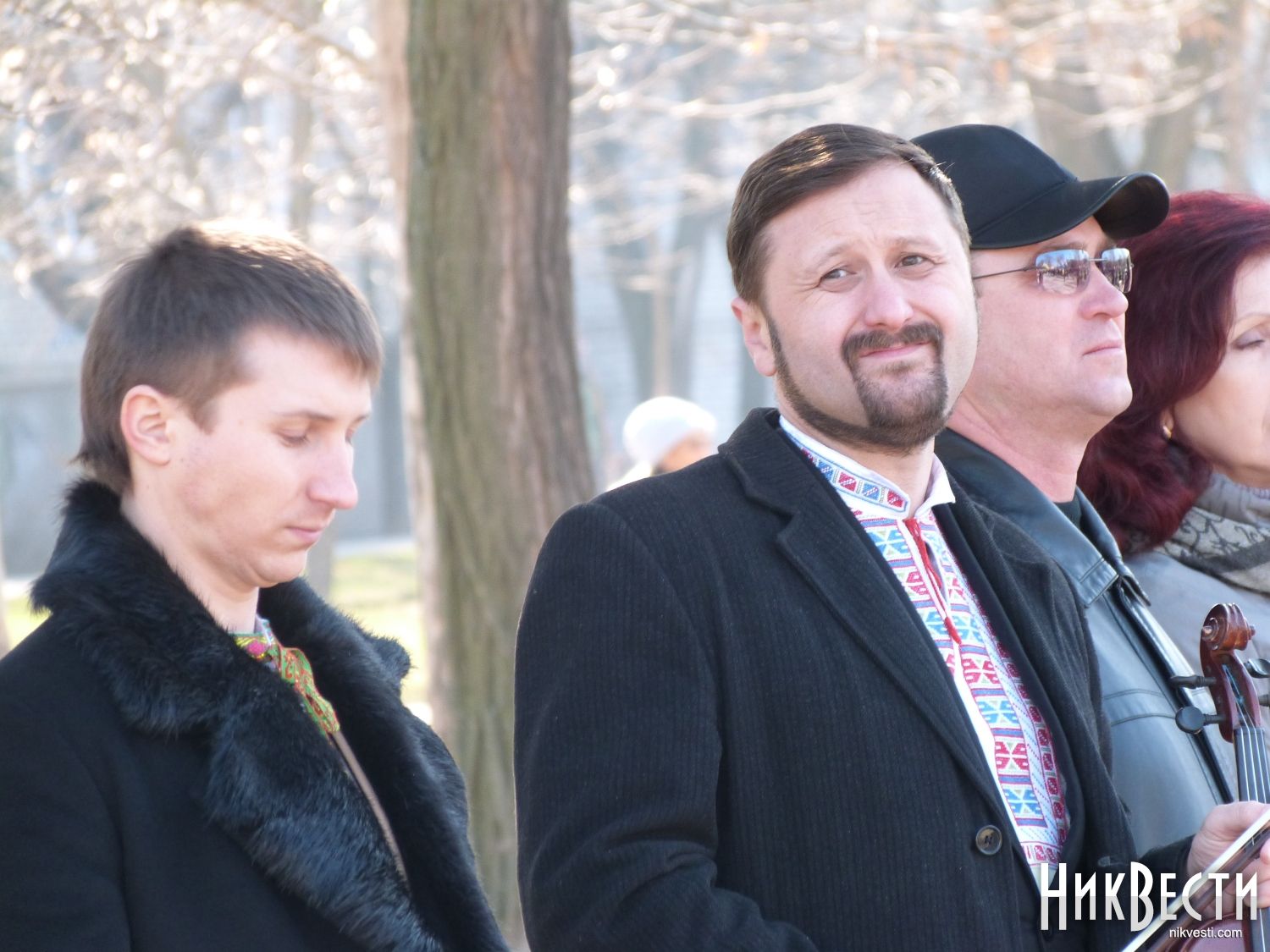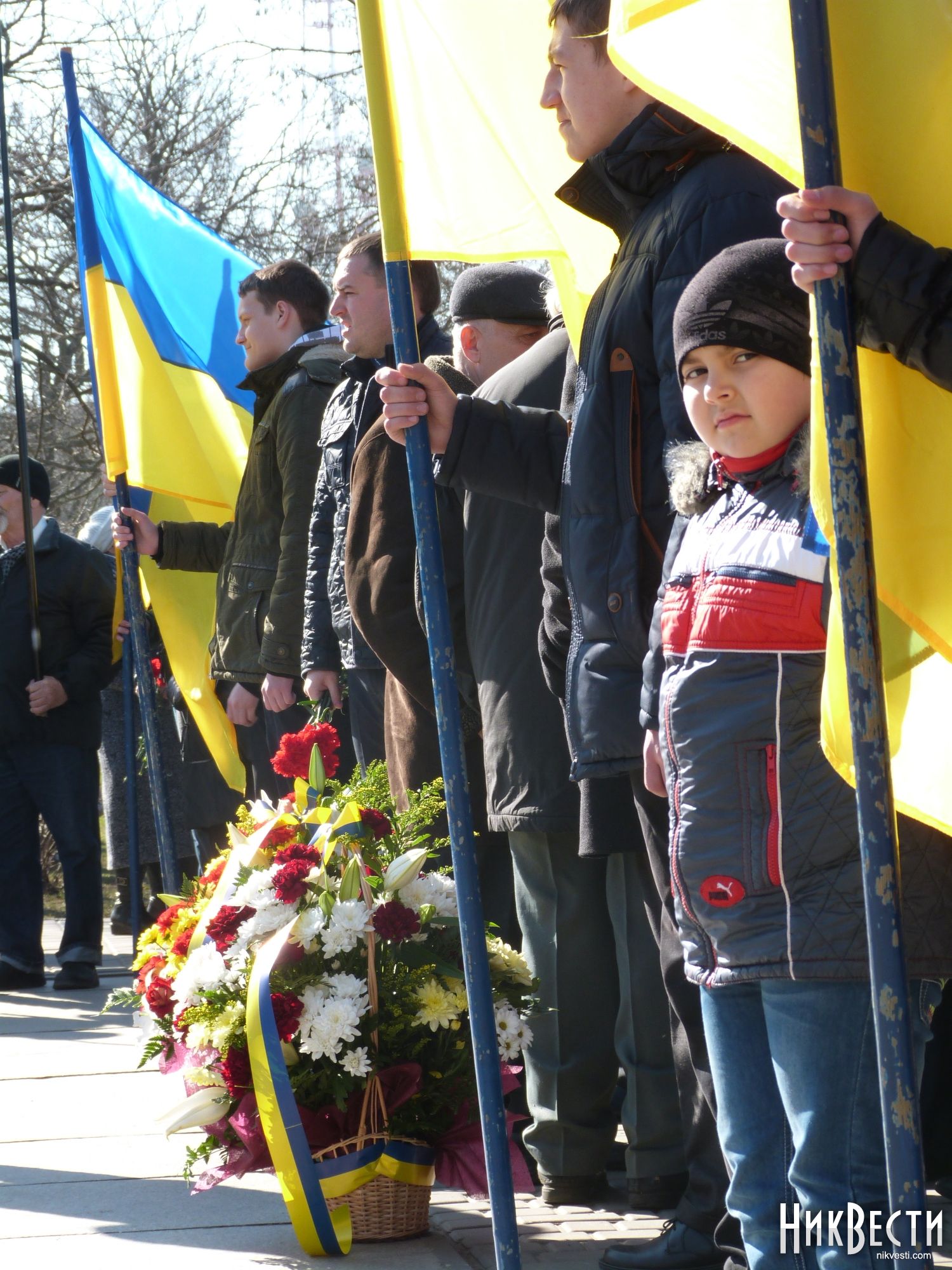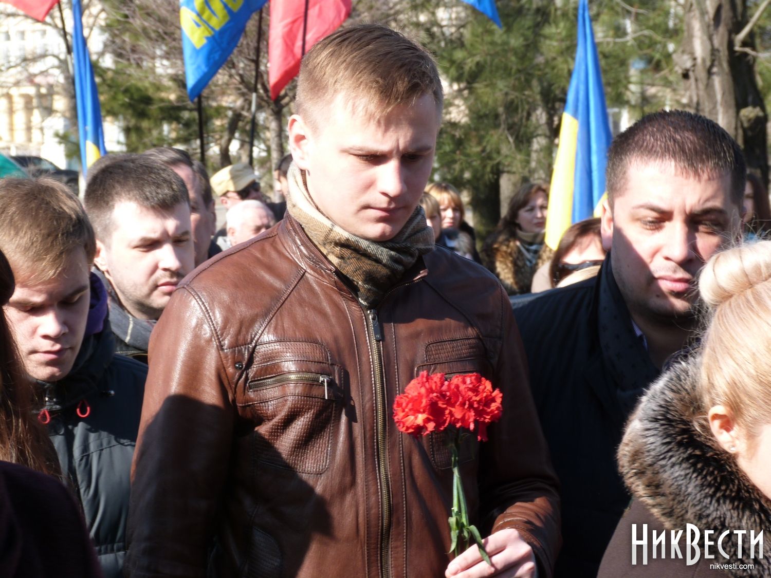 Возложить цветы пришли первый заместитель председателя облгосадминистрации Николай Романчук, исполняющий обязанности главы облсовета Александр Смирнов, мэр Николаева Юрий Гранатуров, нардеп Тарас Креминь, а также депутаты областного и городского советов, представители политических партий «УДАР», «Свобода» и «Народный Рух Украины».