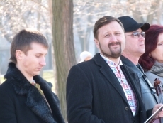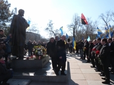 В конце митинга все присутствующие возложили цветы к памятнику Тараса Шевченко.