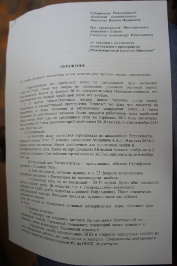 Напомним, коммунальное предприятие «Международный аэропорт Николаев», принадлежащее областному совету, находится в плачевном состоянии: более 30 миллионов гривен долгов, отсутствие сертификатов, что делает невозможным прием-отправку самолетов, а также необходимость восстановления аэровокзала и взлетной полосы, без которых инвесторы отказываются работать. В связи с этим облгосадминистрация и облсовет направили письмо в Кабинет министров Украины и Мининфраструктуры с просьбой передать аэропорт в государственную собственность – ответ еще не получен. Об этом сегодня, 13 марта, рассказал глава облгосадминистрации Вадим Мериков при встрече с трудовым коллективом предприятия.