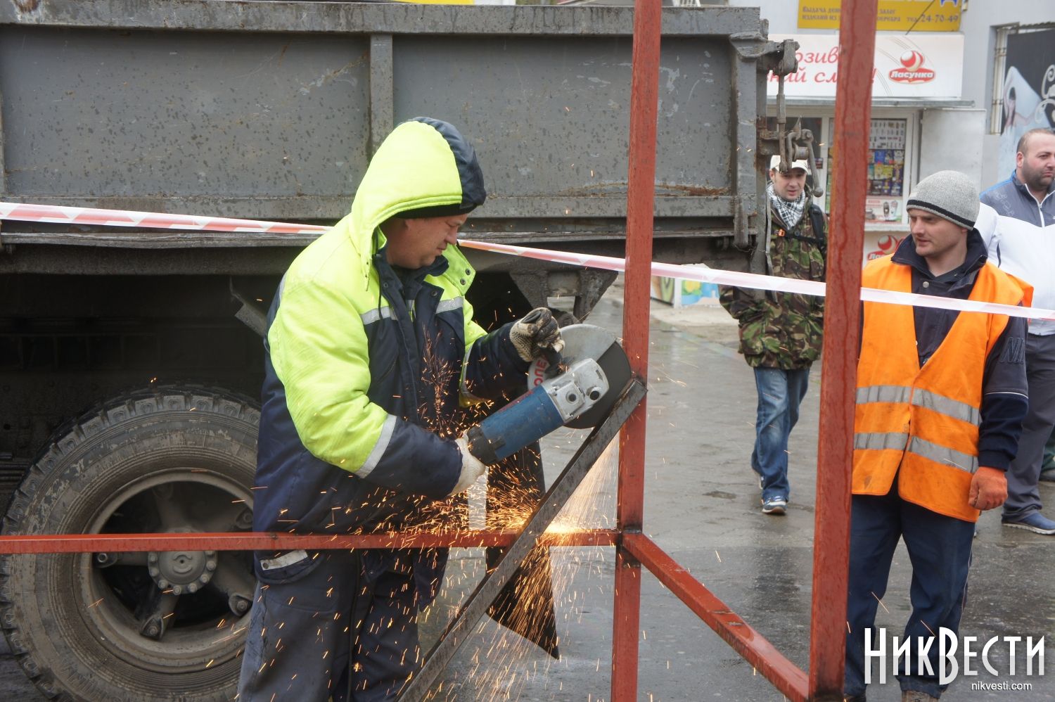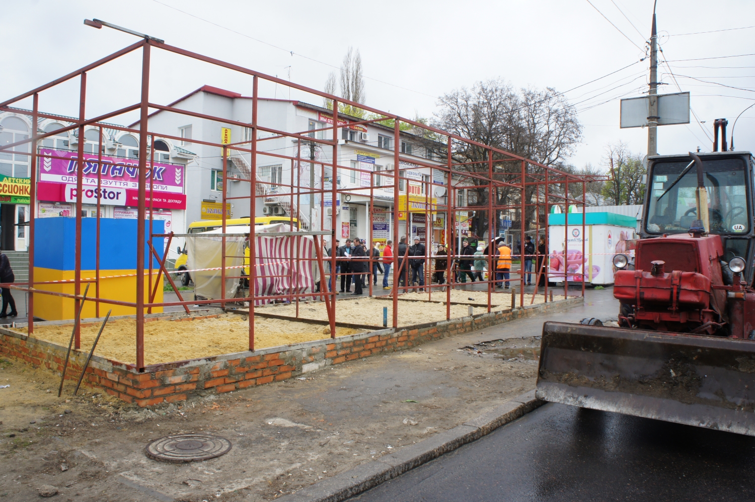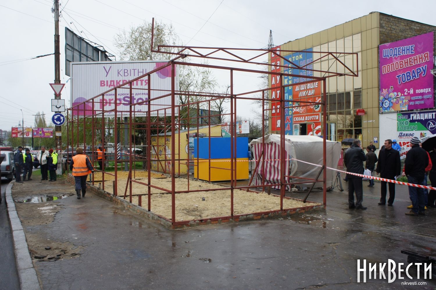 Об этом передает корреспондент НикВестей с места событий – рядом с остановкой общественного транспорта «Автовокзал», где николаевское ЧП «Техбудинвест» успело рано утром установить каркас для будущего «магазина» размерами 3,5 на 12 метров.