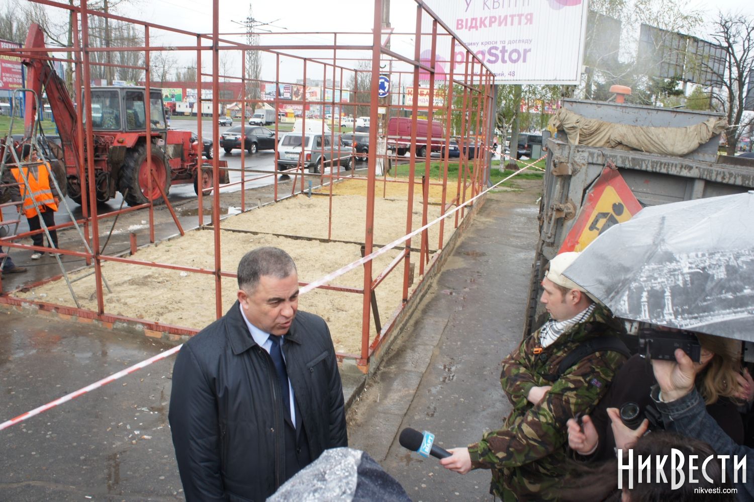 Прибывший вместе с коммунальщиками городской голова сообщил, что у фирмы, за которой якобы стоят представители депутатского корпуса горсовета, не было никаких законных оснований для строительства, кроме предварительных согласований заместителя начальника управления градостроительства и архитектуры городского совета Александра Нефедова и начальника управления земельных ресурсов горсовета Александра Мороза.