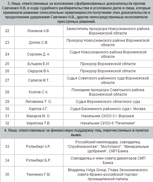 Приложением к закону предоставляется список из 35 человек, против которых парламент просит ввести санкции.