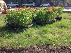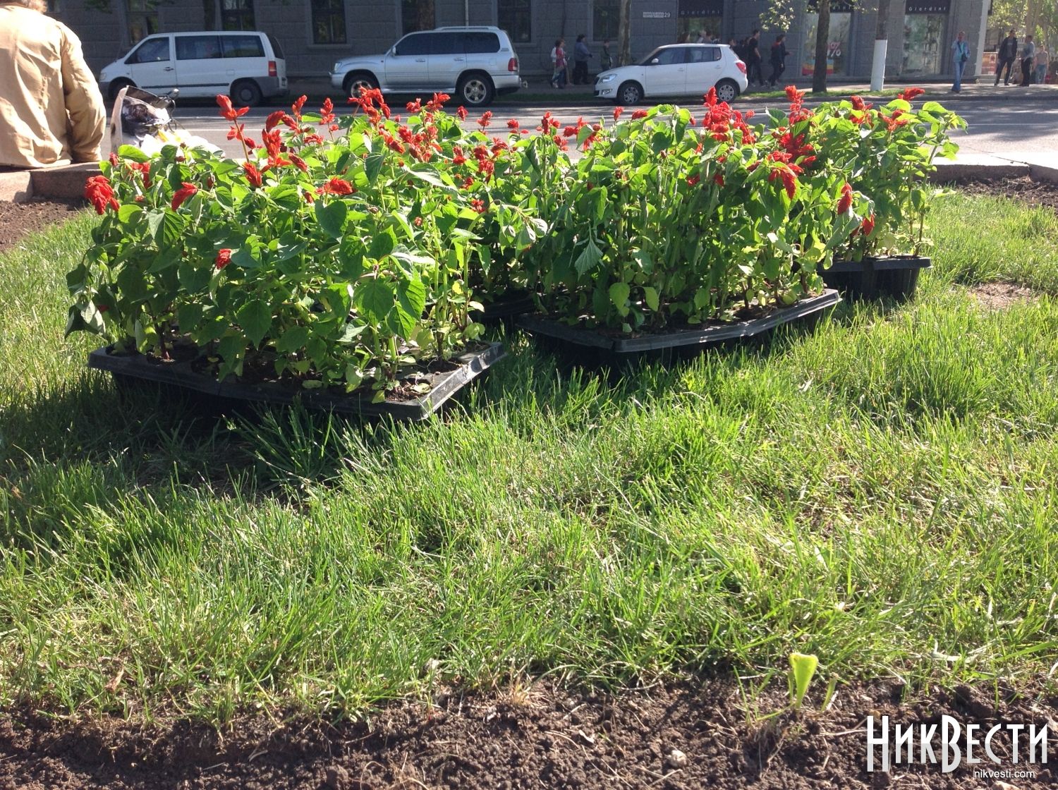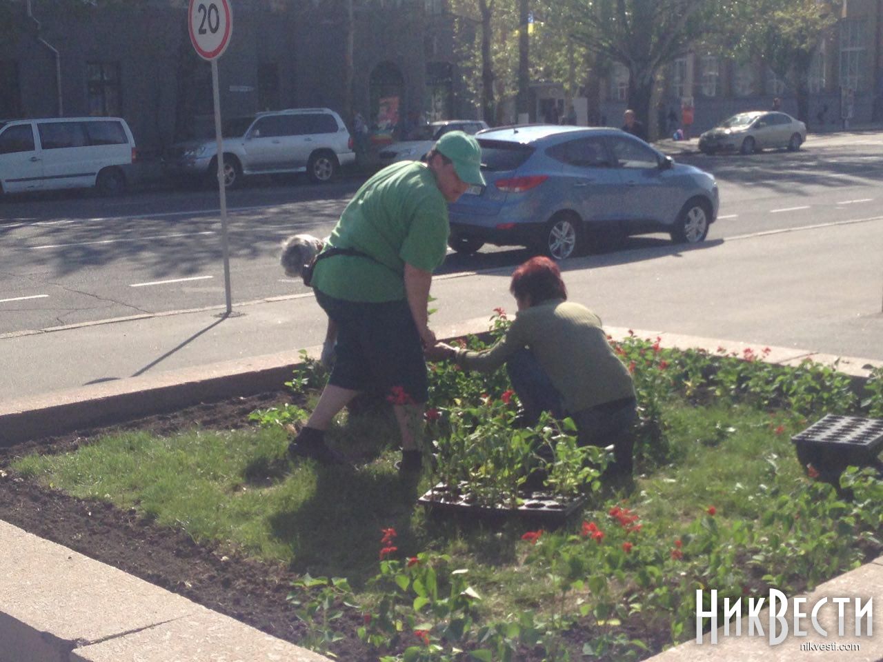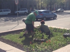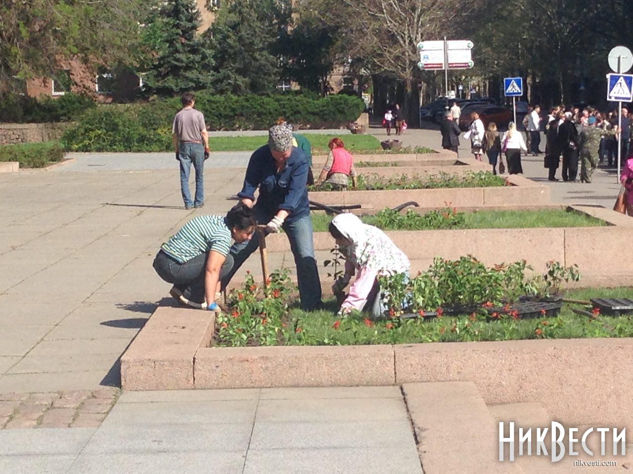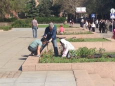 В то же время, работники коммунальных служб города высаживали цветы в клумбы, которые находятся перед памятником.