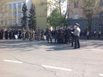 В частности, проводилась репетиция духового оркестра, а также строевая подготовка военнослужащих и репетиция школьников, которые, по-видимому, будут принимать участие в митинге – возложении цветов.
