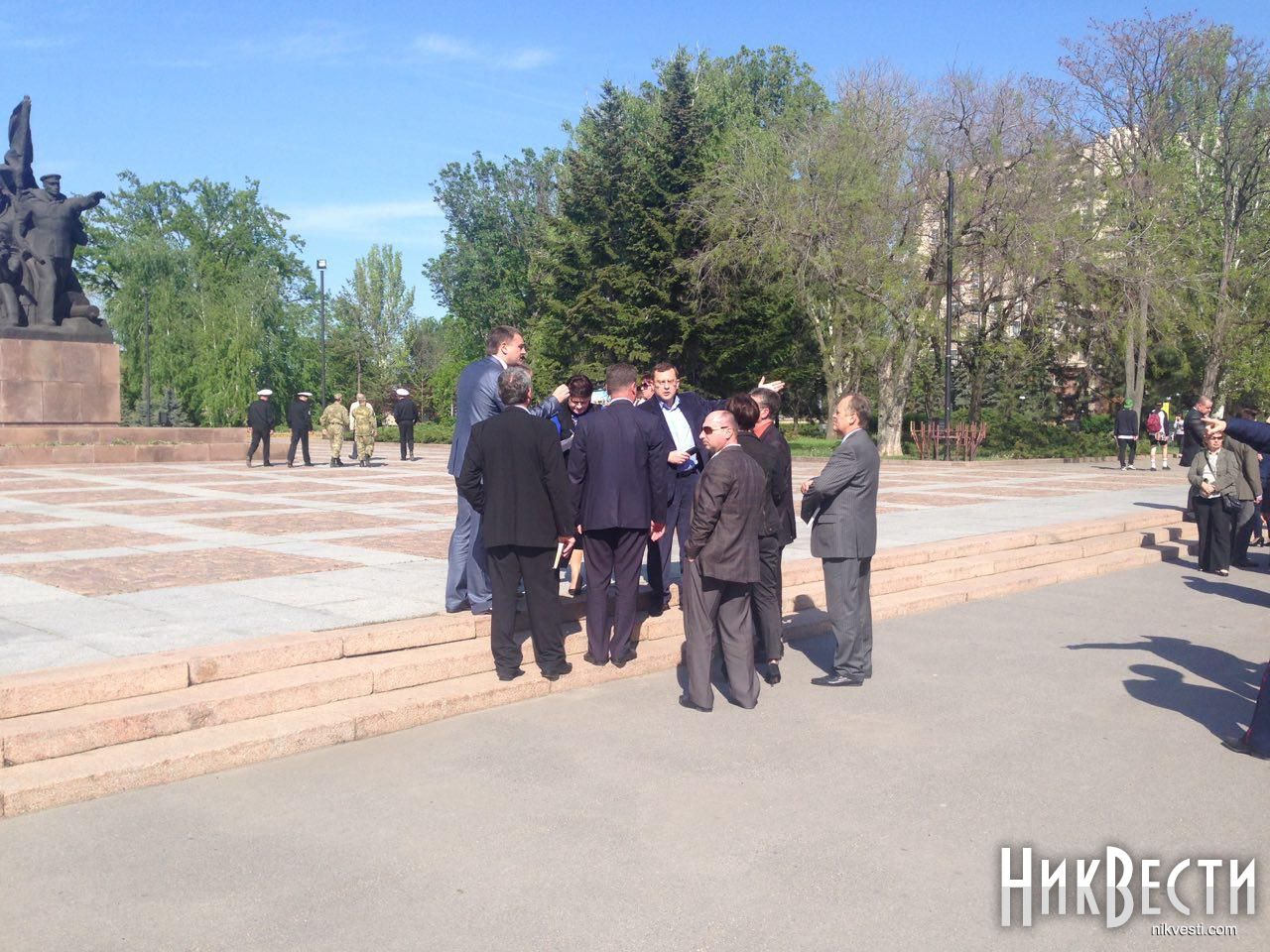 Среди представителей власти были замечены начальник управления культуры, национальностей и религий Николаевской ОГА Михаил Димитров, заместитель начальника областного управления милиции Валерий Коба, управляющий делами горисполкома Инна Бычковская, первый заместитель мэра Юрий Андриенко, врио вице-мэра Евгений Шевченко и другие чиновники.