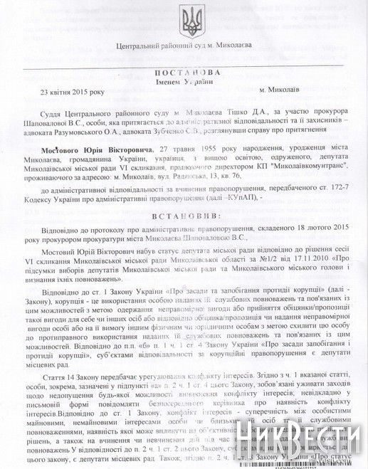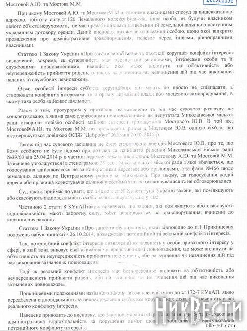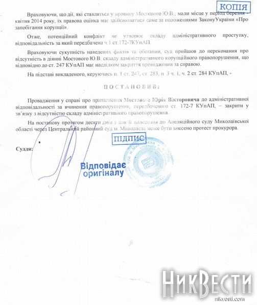 В комментарии НикВестям Юрий Мостовой постановление суда назвал абсолютно законным.