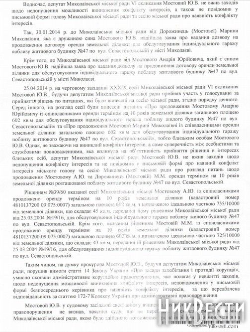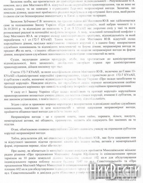 Суть коррупции, обозначенной государственным обвинением, состояла в том, что в 2014 году Юрий Мостовой голосовал за выделение земельного участка под капитальное сооружение - гараж, принадлежащий его невестке.