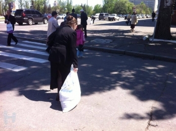 Раздача происходила сегодня в Николаеве около здания русского драматического театра, - сообщает паблик Ник.ua.