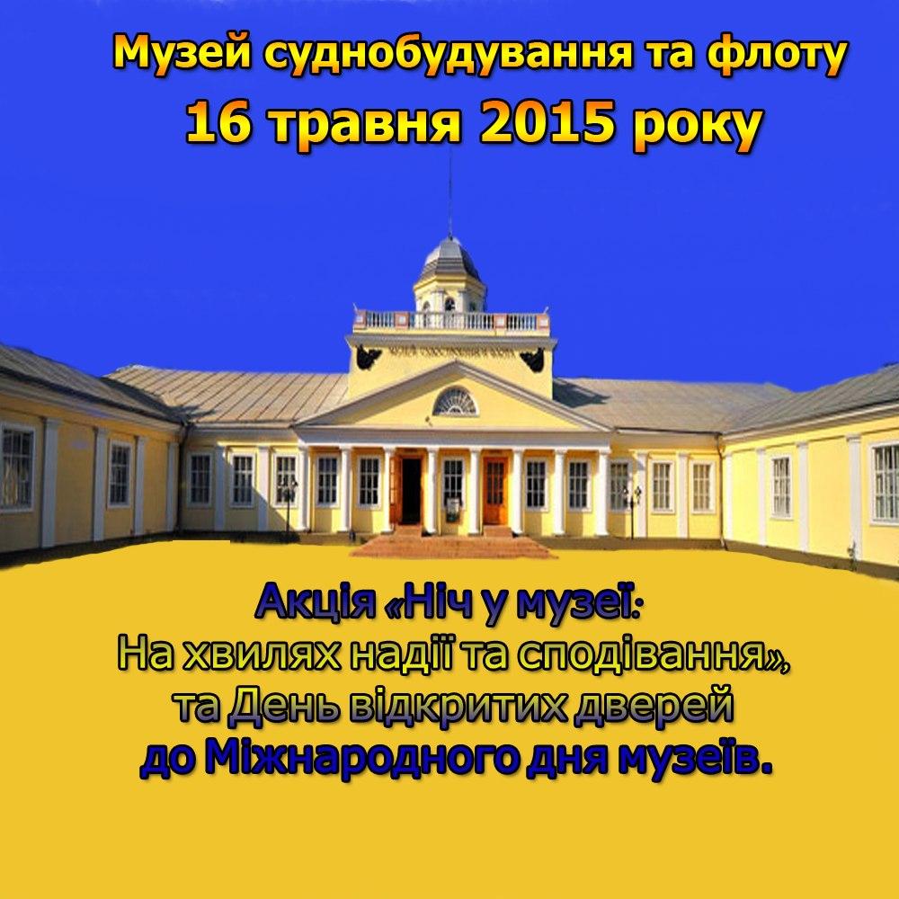 В субботу, 16 мая, в Музее судостроения и флота в Николаеве состоится День открытых дверей, а также акция «Ночь в музее: на волнах надежды и ожидания».