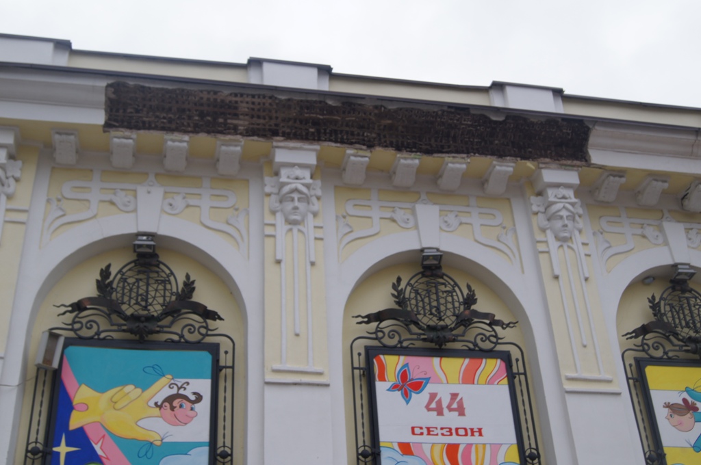 Также сегодня она посетила Николаевский областной театр кукол, где на днях обвалилась верхняя часть фасада здания. Принимая во внимание тот факт, что театр успешно функционирует, аварийная ситуация представляет опасность для посетителей.