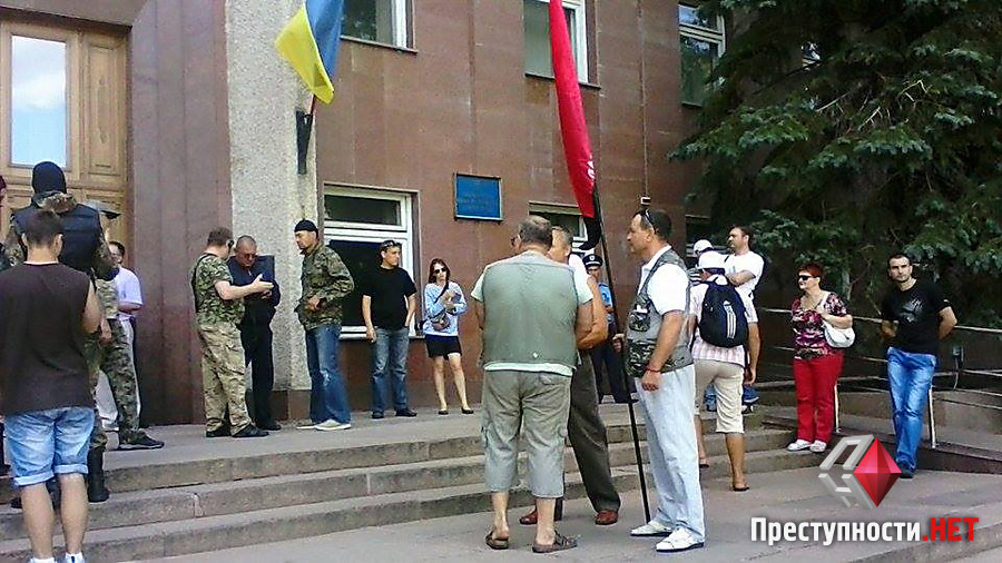 В связи с этим, он предложил перенести акцию под стены ОГА, и активисты колонной от площади прошли к главному входу в здание ОГА. Михаил Борсук дернул дверь, она оказалась закрытой, но дежурный открыл и пропустил его. Глава Николаевского ПС оставил ему листок с требованиями.