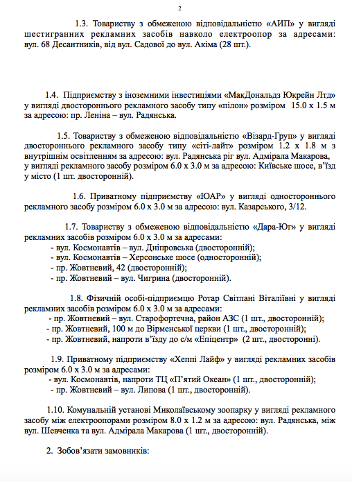 10. Коммунальному учреждению Николаевский зоопарк в виде рекламного средства между электроопорами размером 8.0 х 1.2 м по адресу: улица Советская, между улицей Шевченко и улицей Адмирала Макарова (1 шт., двусторонний).