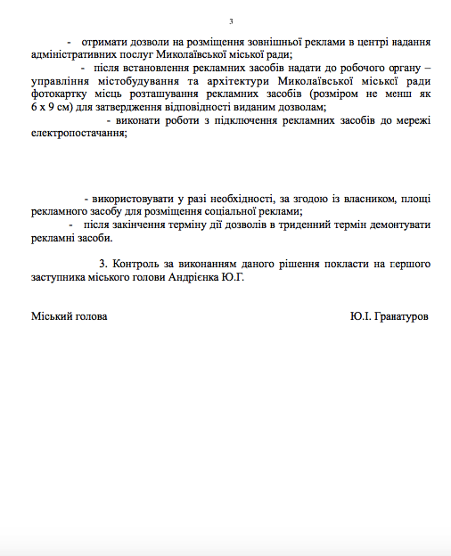 У Гранатурова хотят разрешить установку почти 60 новых рекламных щитов в Николаеве