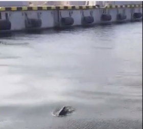 Сообщается, что животное находится в порту уже около двух суток. Сотрудники, обнаружившие дельфина, обеспокоены тем, что млекопитающее из-за неподходящих условий для жизни может погибнуть.