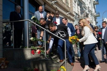 — Сегодня утром мы пришли к посольству Нидерландов, чтобы почтить память погибших в катастрофе малайзийского «Боинга». Эта трагедия всколыхнула мир и многим открыла глаза на то, что происходит на Донбассе. К нам вышел посол страны, которая потеряла в этой катастрофе многих своих граждан – взрослых и детей, - написал Александр Жолобецкий.