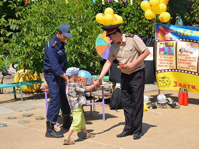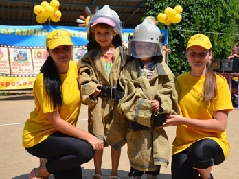 Юные спасатели приготовили детям интересную игровую программу с конкурсами, загадками и подвижными играми. Все дети с удовольствием принимали участие в мероприятии и получили сувениры и цветные шарики, а в завершение громко повторили номер телефона Службы спасения.