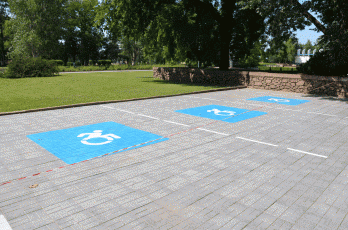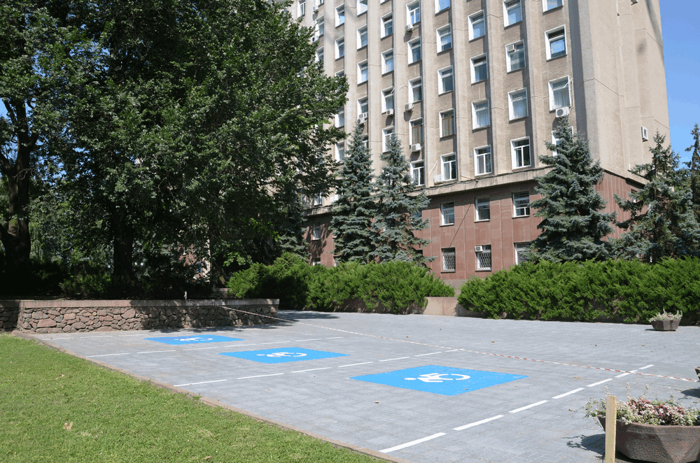 У административного здания Николаевского областного совета оборудовали парковку для людей с ограниченными физическими возможностями - на бетонных плитах была нанесена соответствующая разметка, обозначающая парковочные места.