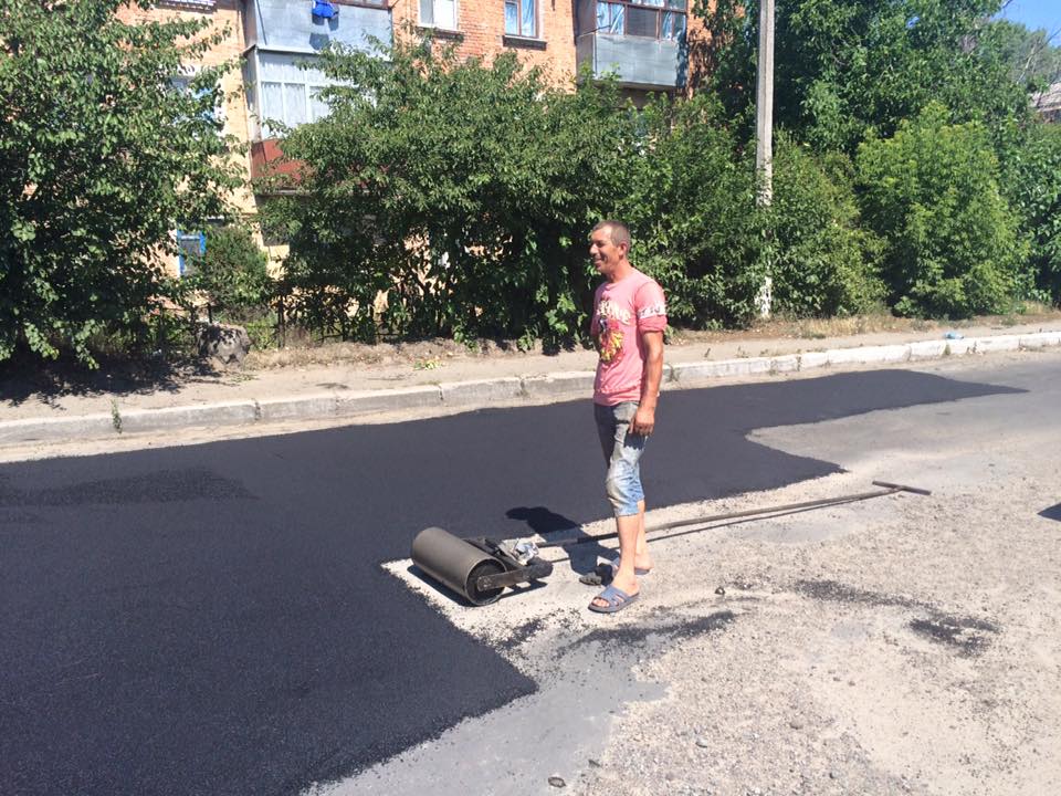 Он опубликовал фотографии, на которых запечатлен процесс ремонта дороги у Первомайского молочно-консервного завода. При этом журналист удивлен, почему вопросом ремонта дорог занимаются общественники, а не народный депутат Украины Аркадий Корнацкий, избранный по 132 округу с центром в Первомайске.