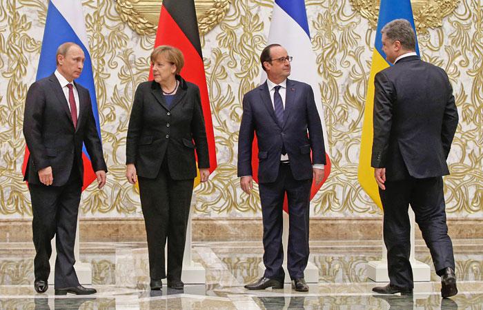 Кроме этого, лидеры четырех стран отметили достигнутые в Минске договоренности об отводе танков и легкой артиллерии на 15 километров с каждой стороны от линии соприкосновения и выразили желание скорейшего их подписания.