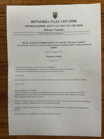 Сегодня, 24 июля, в Одессе проходит выездное заседание Межфракционного объединения «Юг Украины» при участии председателя Одесской облгосадминистрации Михаила Саакашвили и представителей центральных органов власти.