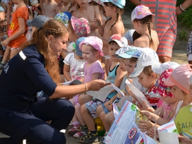 Сегодня, 30 июля, спасатели провели поучительно-игровую программу «Пожарные интересности» для воспитанников детского сада №29 «Саманта».