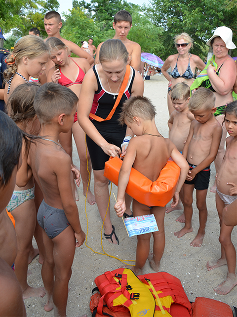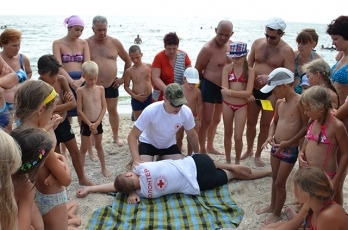 Так, на местном пляже, где всегда людно, а также много семей с детьми, спасатели и представители областной организации общества Красного Креста Украины продемонстрировали мастер-класс по оказанию первой помощи пострадавшему. Также спортсмены из акватлона Федерации подводной деятельности и спорта Николаевской области рассказали и продемонстрировали профессиональные средства спасения утопающих: спасательный круг, жилет и конец Александрова.