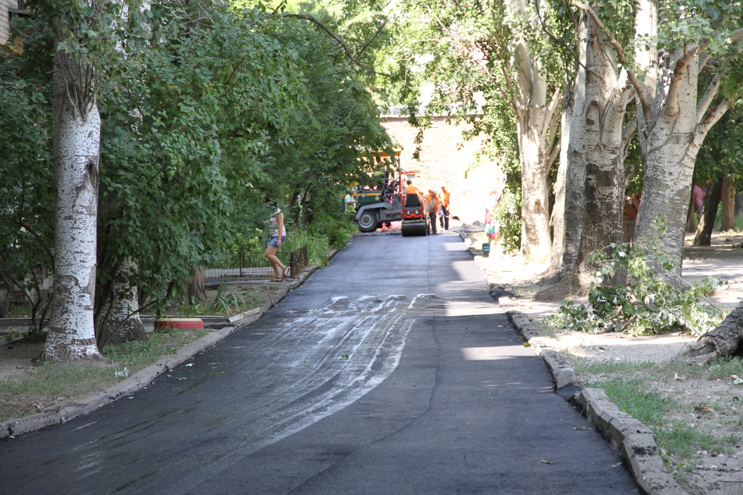Сообщается, что работники бригады ООО «Николаевавтодор» подготовили внутриквартальный проезд во дворе дома № 84, расположенного на улице Фрунзе, к асфальтированию. Так, в некоторых местах обрубили корни деревьев и установили бордюрный камень возле торцевой части дома.