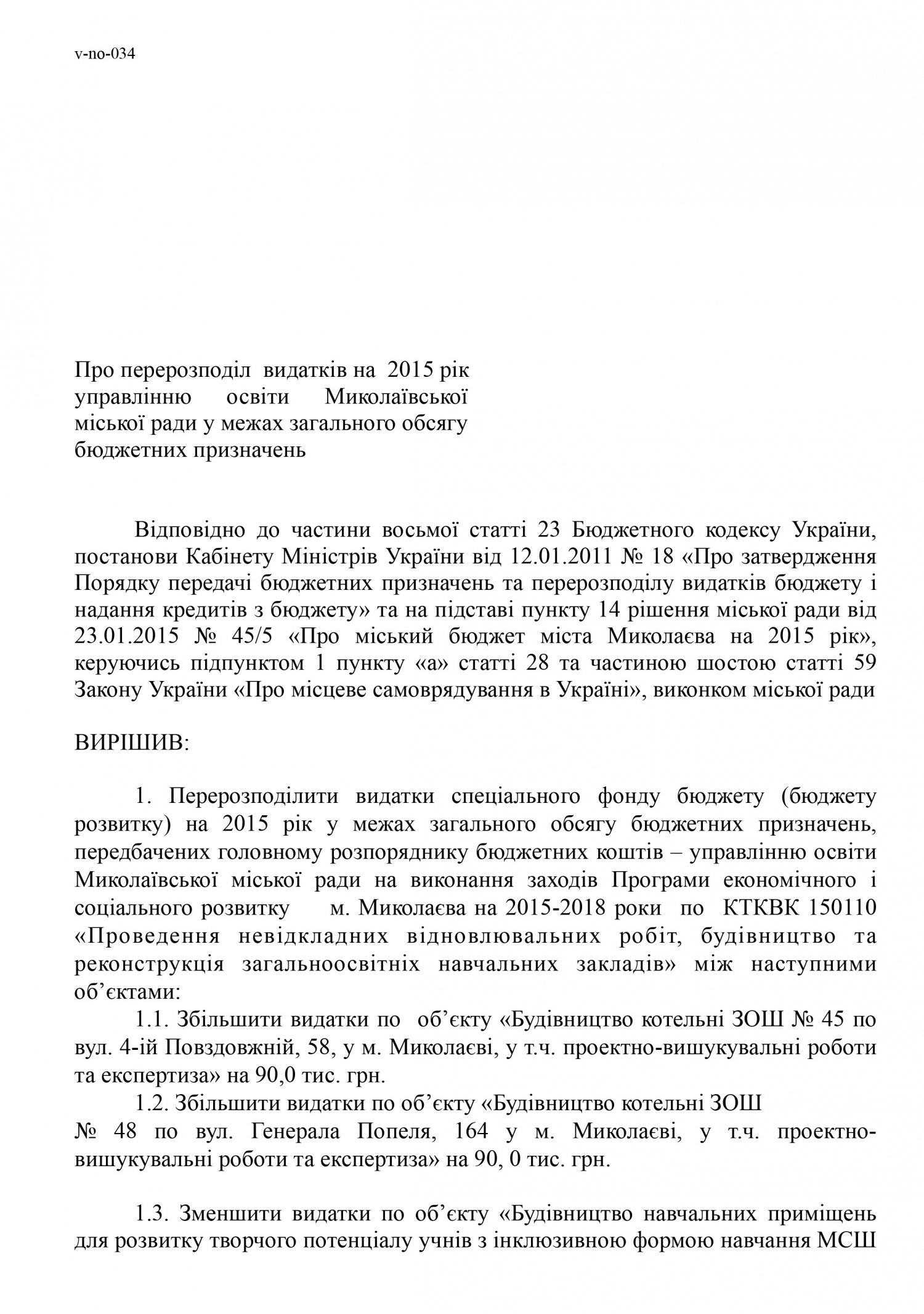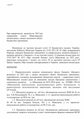 На рассмотрение исполнительного комитета Николаевского городского совета вынесен вопрос о перераспределении расходов на 2015 год городскому управлению образования в рамках общего объема бюджетных назначений, в частности, на ремонты школ.