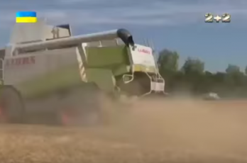 В сюжете демонстрируют видео, на котором комбайны «Агрофирмы Корнацких» убирают урожай на «полях, к которым депутат не имеет никого законного отношения».