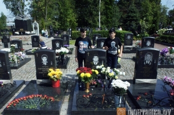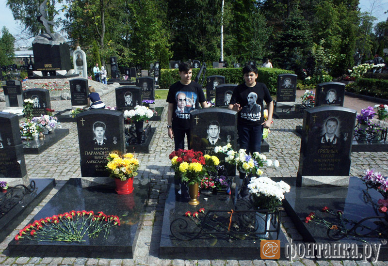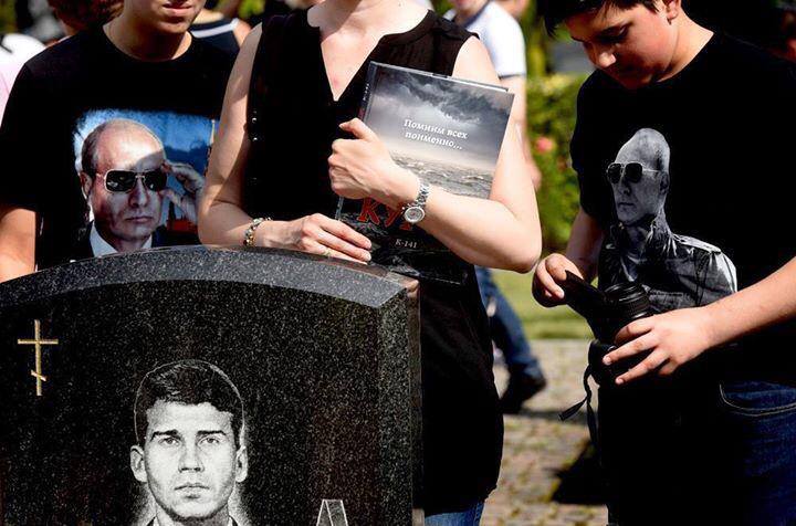 Российский блогер Рустем Адагамов 13 августа выложил поразительное фото с траурного мероприятия, посвященного годовщине аварии подводной лодки «Курск». На снимке два сына погибшего моряка стоят возле его могилы в футболках с портретами президента России Владимира Путина, который в 2000 отказался от операции по спасению экипажа «Курска».
