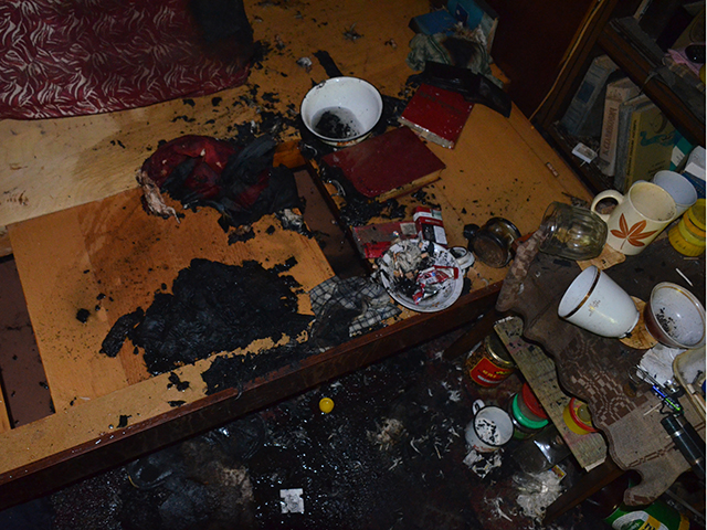 По прибытию было установлено, что в квартире, где возник пожар, находится её владелец. Мужчина надышался дымом, но покидать дом не желал. Спасатели вывели пострадавшего на свежий воздух и передали бригаде скорой медицинской помощи. Пожар площадью 1,5 м2 был ликвидирован в 12:47.